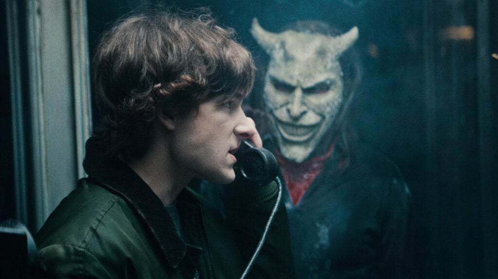 Three years after killing the serial murderer known as the Grabber (Ethan Hawke), Finney (Mason Thames) is a high school student getting into fights, smoking marijuana, and ignoring the spectral calls he continues to receive from every phone booth he passes. His behavior upsets his sister, Gwen (Madeleine McGraw), who’s still grappling with disturbing, pre-cognitive visions, this time of three boys being stalked at a winter camp.