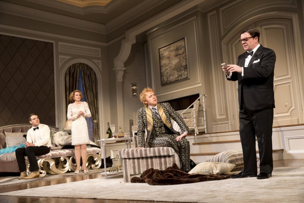 There’s not much plot to McNally’s play. Austin’s premiere, inauspiciously called The Golden Egg, is a flop, and we watch as his so-called friends vacillate between flattery and fury while awaiting this news. Originally written in the early 1980s, but revived considerably for the present (Stock spends much of the play bringing up the comic coats of Daniel Radcliffe, the cast of The Lion King, and Lady Gaga), the play in performance rides on its one-liners. Thankfully, they mostly land, letting the 75-year-old McNally show how hip he still can be, but any lag in the laughter makes one wish the play were shorter, faster, funnier—or more substantive.