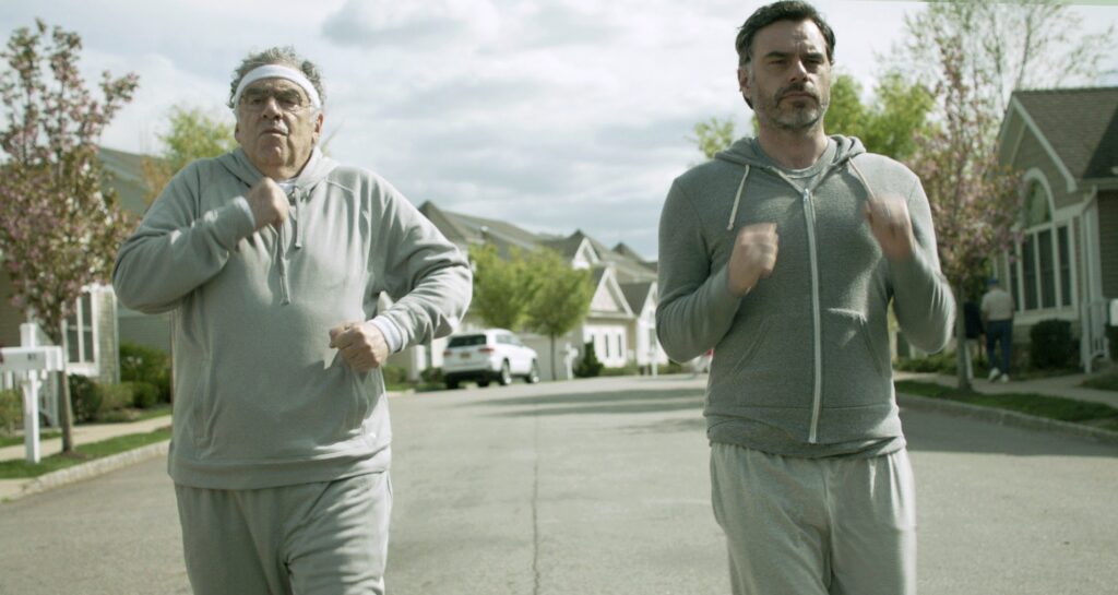 Like most films of its ilk, Humor Me is unaware of a resonant irony. These films preach of writers needing to branch out from their bubbles, while plopping them in a new bubble that enables their talents and protects them from chaos. This plot element isn’t incidental, as writers yearn for the stability that enables them to write. They’re stuck in their heads and want someone close by—a spouse, lover, or parent—to tend to the tedium of everyday life while they wrestle with their thoughts. Nate once wrote a successful play about his mother’s death, and he’s been struggling with a follow-up for years, forcing his wife, Nirit (Maria Dizzia), to assume total responsibility for their young son, Gabe (Cade Lappin). Understandably resenting this arrangement, Nirit leaves Nate for a French billionaire, forcing Nate to move into a retirement community in New Jersey with his father, Bob (Elliott Gould).