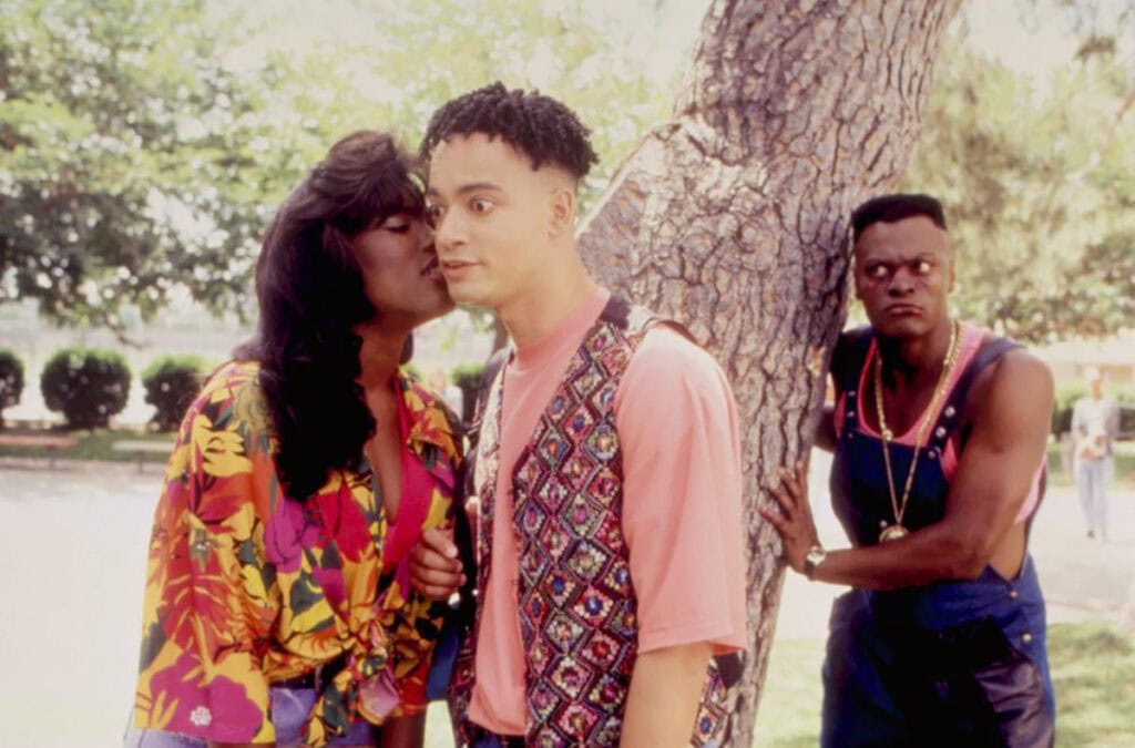 Bear in mind that these questions aren’t ones that arose from my recent viewing of Class Act. I was once again reminded that this film would make a good double bill with the similar (and superior) 1991 film Strictly Business. Like Class Act, that Halle Berry-Tommy Davidson starrer consciously perpetrates the tired assertion that to be truly black, one must be (to paraphrase Donny and Marie Osmond) “a little bit bougie and a little bit thug asshole.” But Strictly Business bypasses the identity swap for a personality transplant between the bougie dude and his streetwise pal so that the former can snag the girl of his dreams. While both male characters are of a similar hue, the lady is far lighter than either of them. While I still wonder about Class Act’s casting decisions, I’m sure the folks who made Strictly Business knew exactly what they wanted to say about theirs.